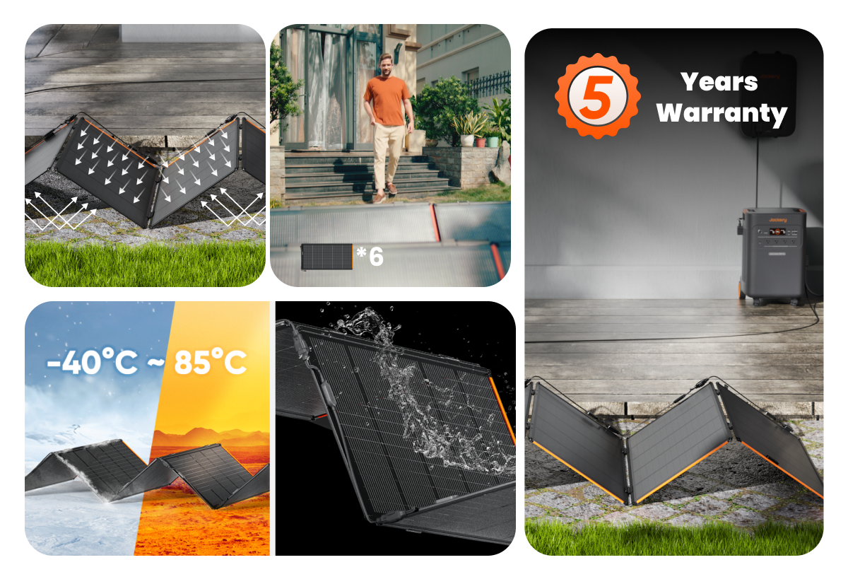 - Jackery SolarSaga 500 X consists of six SolarSaga 85 panels, each of which can use individually.